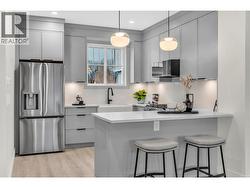 Introducing Argyle by Basran Properties — a thoughtfully designed townhouse community that blends timeless farmhouse-inspired architecture with fresh, contemporary interiors. This quality-built townhome offers 2 bedrooms plus a den with closet, 3 bathrooms, a fenced yard, and ample parking with both a garage and carport. The main level features a bright, open-concept layout with 9' ceilings and a designer kitchen showcasing quartz countertops, a full-height quartz backsplash, a gas range, and premium appliances. The inviting living area includes a feature wall with built-in cabinetry and an electric fireplace, with access to a private deck. Upstairs, the spacious primary suite boasts a walk-in closet with custom millwork and a 3-piece ensuite featuring a herringbone-tiled, custom-glass shower. A generously sized second bedroom, large den, and convenient upper-level laundry complete this floor. Perfectly located near downtown Penticton, the SOEC, restaurants, and schools, Argyle offers a connected, low-maintenance lifestyle. GST applicable — eligible first-time buyers may qualify for a GST exemption. (id:27)