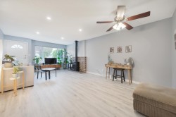 Welcome to Parkside Estates, a 55+ community in Pitt Meadows. This rancher-style 2-bed/2-bath townhome is move-in ready and extensively renovated, featuring brand new bathrooms with in-floor heating, a full-size walk-in shower, and a luxury walk-in tub; new laminate flooring; fresh paint throughout (trim, doors, and mouldings) updated lighting, a new furnace, A/C, and hot water tank. The spacious kitchen includes an eating nook, updated countertops and appliances, and a sliding door to a private patio. A bright living/area with a new fireplace anchors the home. The primary bedroom offers a bay window and a 3-piece ensuite. Secure RV and visitor parking, ample storage; pets and rentals allowed with restrictions.