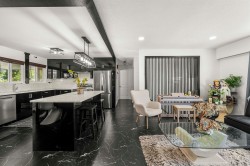 Renovated top to bottom in 2025 with full City permits! This Lincoln Park beauty offers 2,421 sq ft on a sunny 6,410 sq ft lot. Main level features an airy open plan with a designer kitchen and large kitchen island, ventless hood, quartz counters, custom cabinetry, new plumbing & wiring. Two tiled baths up; new vinyl plank floors, LED lighting & blinds. Exterior: sound-proof windows, rebuilt roof (plywood, solar insulation, metal fascia, gutters), fresh asphalt drive, architect-designed 2-car carport, aluminum fencing with automatic gate. Downstairs is a Legal 3-bed suite as a Mortgage Helper. 342 sq ft covered patio + 339 sq ft deck. Walk to schools, parks & transit. Open House January 17th & 18th, 2-4PM