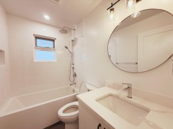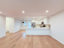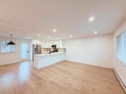 TOP-floor 3-bedroom, 1-bath suite in a PRIME location, beautifully updated with high-end renovations throughout. This bright home features an open living space, modern kitchen with quality cabinetry, newer appliances, gas stove, and a large island perfect for everyday living and entertaining. Enjoy access to a spacious sundeck and a flat, fully fenced yard with peek-a-boo mountain views. The suite includes heated bathroom floors, closet organizers and upgraded windows for comfort. Tons of parking available on the property. Conveniently located close to schools, recreation and shopping. Utilities shared with the downstairs tenant 60/40. A rare opportunity for anyone seeking a stylish, move-in-ready home in an excellent neighborhood.