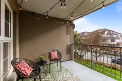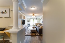 Renovated unit and well maintained building in Port Coquitlam! This 2 BDRM 1BATH unit is conveniently located near McLean Park, walking distance to James Park Elementary & Ecole des Pioneers Secondary, shopping centres & restaurants. Offers 2 parking spots, Storage, 2 balconies. Open kitchen layout, spacious living and dining room areas, cozy gas fireplace. Beautiful tile and laminate flooring throughout. Renovated & added on: Laminate, Kitchen, S/S appliances, washer and dryer, washroom (vanity and sink) Deck, built-in TV stand & shelves and built-in dining room seats with storage. Amenities include clubhouse with games room and fitness centre. Don't miss your opportunity to grab this unit! Open House: Sat & Sun Feb 28 & Mar 1, 2-4 pm!
