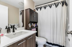 The Shaughnessy is the primary concrete tower in the heart of POCO. Steps from Lions Park, Earls, Safeway and lots of shopping & restaurants. 878 sq ft - 2bdrm 2bath. Freshly painted, New Washer/Dryer. Open kitchen with gas range. Bedrooms are separated offering privacy. Balcony has a "cat-io" and can stay. 2 pets allowed cat/dog. Wonderful amenities gym, yoga studio, games room to host functions which leads out to garden courtyard. Lots to see from this corner SE facing unit, views of the mountains, trains, courtyard, city and bridge. Included 1 pkg & 1 locker. 4 EV chargers. Very central location with easy access to public transit, Lougheed Hwy, Rec Center, Hwy 1. Move in and enjoy!