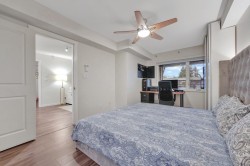Move-in ready and beautifully updated 2 bedrooms and 2 baths top-floor condo in the heart of Port Coquitlam. Updated kitchen features modern cabinets, breakfast bar, granite counters and SS appliances. The dining and living areas open onto 2 covered balconies - perfect for year-round enjoyment. Bedrooms are thoughtfully situated on opposite sides of the living room for privacy, with the primary offering a walk-in closet and a nook for a home office. Enjoy updated laminate flooring throughout and a large laundry room with ample storage. The well-managed strata allows 2 pets and the building has a new roof. Ideally located on a quiet street, just steps from schools, Gates Park with its multiple sport fields & scenic Traboulay Trail, recreation center, shops, restaurants & West Coast Express.