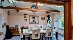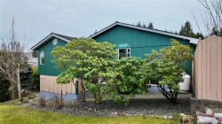 7710 Cedar Place in beautiful Port Hardy is all about location, views and solid value. This well-kept non-strata half duplex offers ocean and mountain views, with both enjoyed from the upper-level windows and deck. Inside, you'll notice the warm custom woodwork and thoughtful updates right away. The dining room features a vaulted ceiling with decorative exposed beams, skylights, and two stained-glass features beautifully embedded in the walls - just one of several details that give the home extra character and natural light. Set on a 5,384 sq ft R-2 lot, there's flexibility here. Workshop space, room to garden, greenhouse potential and mature landscaping are already in place. The Generac backup generator, fueled by propane and wired directly into the home, means you're covered when the power goes out. Just around the corner from the ocean in a quiet Port Hardy neighbourhood, you're minutes to marinas, beaches, fishing, hiking and everything Northern Vancouver Island is known for.