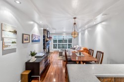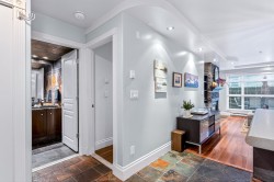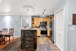 Elevated ground-floor home in the desirable Sonrisa, ideally located facing the quiet courtyard w/ mountain views. Spacious 2 bdrm / 2 bath layout w/ bdrms on separate sides—ideal for families & guests. Extra-large (over 550 square feet) patio perfect for entertaining or outdoor living. It has been thoughtfully renovated over time w/ upgrades throughout, incl s/s appliances, newer flooring, updated lighting & finishes. Cozy gas f/p included in maint. fee. Unbeatable Port Moody location—steps to SkyTrain and WCE, Rocky Point Park, Brewer’s Row, shops, cafés & everyday amenities that define the west coast lifestyle. Well-managed building w/ indoor pool & gym, along with 2 parking stalls, spacious storage locker & visitor parking.