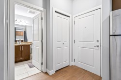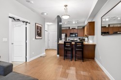 Welcome home to "The Square"! This modern, brick building is in the hub of beautiful Port Moody, so you can truly take advantage of all that this highly desirable city has to offer. Enjoy your 1-bedroom, 1-bathroom home with a Cheater Ensuite, numerous upgrades, including brand-new flooring, stunning wainscoting in the bedroom, 9-foot ceilings, & built-in closets in the master. You get your own MASSIVE private patio, which is fantastic for BBQing & hanging out with friends & family! Open concept living, smart layout with no wasted space. Walking distance to Brewery Lane, Rocky Point, restaurants, shops, recreation & the Inlet Center Station w/skytrain service to Vancouver nearby! 1 U/G parking stall, 1 storage locker. Call today to get into the lifestyle you dream about!