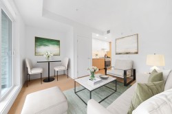 Welcome to SITKA HOUSE in the heart of PORT MOODY. This modern junior GROUND-LEVEL suite offers efficient living in a boutique building close to cafés, shopping, SkyTrain, Brewery Row, Rocky Point Park, & local trails. Interior features include quartz countertops, marble porcelain tile, durable vinyl flooring, stainless steel appliances, and forced-air HEATING & COOLING for year-round comfort. Residents enjoy exceptional amenities such as a fitness centre, yoga studio, co-working space, kitchen/lounge, ROOFTOP TERRACE with ocean & mountain views & pet wash station. EV-ready parking and storage locker included. GST HAS BEEN PAID BY THE SELLERS. OPEN HOUSE: Saturday, January 24 (2-4pm)