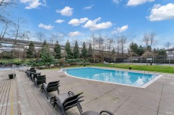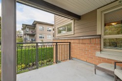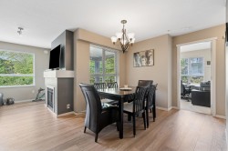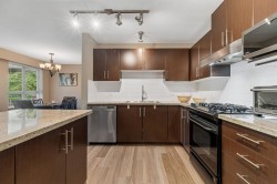 Boardwalk at Klahanie! Spacious 3 bed, 2 bath home overlooking a quiet greenbelt with a tranquil brook. Gourmet kitchen features granite counters, island with breakfast bar, plenty of cabinetry & stainless sink with garburator. Bright living room offers an electric fireplace, picture window & French doors to a covered deck—ideal for year-round BBQs. Deluxe primary suite with 2 closets & spa-like ensuite with double sinks, soaker tub & separate shower. Brand new waterproof vinyl plank floors! Strata has approves this unit for AC. Includes 2 parking stalls. Perfect location near shops, coffee, Rocky Point & Inlet Trail, Restaurants, brewery row, with easy access to Old Orchard Park, White Pine Beach, Buntzen Lake & Belcarra. OPEN HOUSE January 14 - 3pm-5pm & January 18 - 1pm-3pm