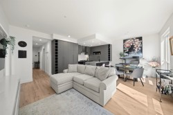 Welcome to modern living in the heart of Port Moody. This garden-facing 2 bedroom, 2 bathroom corner home at 50 Electronic Ave offers nearly 1,000 sq ft of open-concept space, thoughtfully designed with integrated appliances, a striking quartz waterfall island, and a custom pantry wall. Level up your lifestyle with exclusive access to Club 50, a 9,000 sq ft, three-level amenity space with everything from a fitness centre and yoga studio to a sky lounge, coworking hub, kids’ play area, podcast room, dog wash, guest suite, and more. With TWO parking stalls and TWO storage lockers, this home offers both comfort and convenience. Just steps from the SkyTrain, Shoreline Trail, restaurants, and shops.