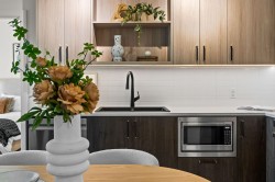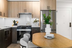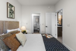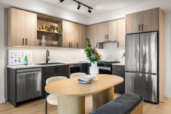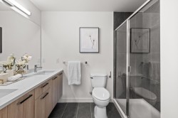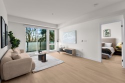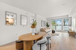 HOME 407 IS IDEALLY POSITIONED WITHIN THE BUILDING, ENJOYING A STRIKING OUTLOOK IN THE SAME SOUGHT-AFTER DIRECTION. EXPERIENCE SOPHISTICATED MODERN LIVING AT "THE ANCHOR." Thoughtfully conceived by industry leaders, developed by the highly regarded BOLD PROPERTIES, with interiors by Creative Designworks & architecture by Gateway Architecture. Setting a refined standard for contemporary urban residences. Exceptionally functional layout with kitchen island, expansive 9ft ceilings, generous proportions, and unobstructed mountain & glimmers the water. Approximately 130 SF patio provides an inviting outdoor extension, ideal for relaxed entertaining & indoor-outdoor living. Finished with premium materials throughout & enhanced with modern comforts. 2 parking & locker.