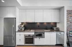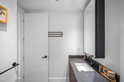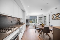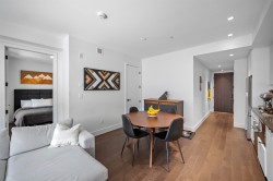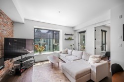 Welcome to PLATFORM, ideally situated in the heart of Port Moody! This almost new, loft style 1 bed/1 bath home immediately impresses featuring 9 foot ceilings, engineered hardwood flooring throughout, beautiful wall mounted electric fireplace & Aragon's signature reclaimed brick wall in your living room. The linear kitchen is modern and boasts spacious quartz counters, top-end stainless appliances (with gas cooktop) and tons of cupboard space. The open concept living & dining area leads out to a spacious private & covered balcony, perfect for entertaining! Great central location, just steps to Rocky Point Park, Biking & Hiking Trails, Brewers Row, Boutiques, Moody Centre Station - West Coast Express & Evergreen Line. 1 parking + 1 storage included. EV PARKING & MODO CAR are available.