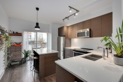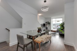 Welcome to Clarke Townhomes in Port Moody! This stylish & functional townhouse offers 3 bedrooms, 3 full baths, & an attached garage. The lower level features 1 bed + 1 full bath, ideal for guests, a home office, or flexible living space. The bright & airy main level showcases an open-concept living & dining area that flows seamlessly into a contemporary kitchen complete with S/S appliances, quartz countertops, & ample storage. Step out onto the balcony off the kitchen & enjoy lots of natural light. Upstairs, you'll find 2 bedrooms + 2 full baths. Soaring vaulted ceilings & ample closet space enhance both comfort & style. Ideally located close to schools, transit, shopping, & recreation. Includes 2 parking space: an attached single garage & a carport. Open House Jan 24/25 Sat/Sun 2-4pm.