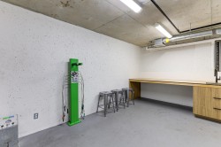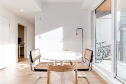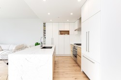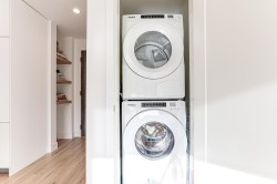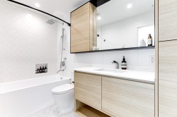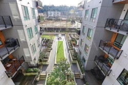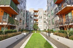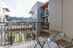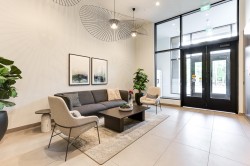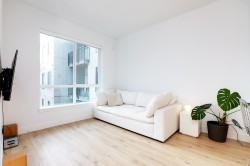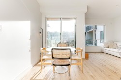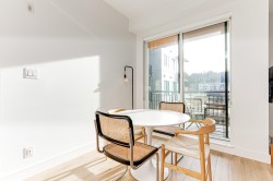 BRIGHT, SOUTH-FACING 1 BED + DEN WITH A/C! This home features high ceilings, a bright open layout, and unobstructed courtyard views. Located on the exclusive 5th/6th level with A/C and HVAC. It offers full-size washer/dryer and premium appliances, including a Fisher & Paykel panelled fridge and Bosch wall oven & dishwasher. Spacious bedroom with ample closet space and a dedicated den. Enjoy modern finishes, generous storage, and a large balcony with gas & power hookups. 1 parking with EV capability + 2 bike lockers. Amenities include gym, co-working space, lounge, theatre room, guest suite, kids’ playroom, dog run & wash, bike room, courtyard, patio with firepit, and garden plots. Steps to Rocky Point Park, breweries, grocery shops, cafés, and SkyTrain and Westcoast Express station.