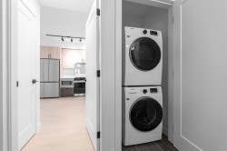 Welcome to ANCHOR by BOLD Properties, a modern 2 beds & 2 baths home in the heart of Port Moody, just steps to shops, SkyTrain, and outdoor adventure. This bright condo features soaring 9’ ceilings, spa-inspired bathrooms with quartz countertops, and a sleek SAMSUNG WiFi-enabled appliance package with SmartCare Technology. Entertain on your massive 128 sf balcony with water and mountain views. Includes 1 EV pre-wired parking stall and storage locker. Amenities: rooftop BBQ & lounging with Burrard Inlet views, fitness centre, lounge, bike repair room, and dog wash.