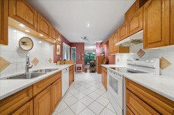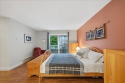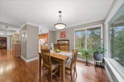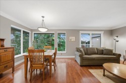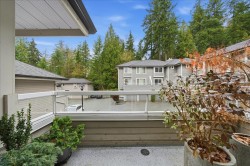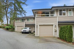 Experience serene, tree-lined living at VIEWPOINT. This 2 bed, 2 bath townhome has been meticulously maintained & is move-in ready. The generous layout offers the best of both worlds: ample space to entertain in comfort, yet perfectly designed for quiet evenings snuggled up by the slate-tiled gas fireplace. The home features recent upgrades, including brand-new high-efficiency windows (2024), new Washer/Dryer (2024) & freshly installed kitchen countertops & sink. The large windows frame the lush greenery, while the South-facing deck provides a private, sun-drenched spot to enjoy your morning coffee surrounded by nature. Commuting is easy with the bus 1/2 block away & SkyTrain within 10 minutes. Just a short drive to Newport Village. All levels of schools are within walking distance.