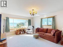 PANORAMIC OCEAN VIEWS - Discover coastal living at its finest in this spacious 5-bedroom, 3-bathroom home located in the highly sought-after Grief Point neighbourhood. Situated just a stone's throw from the beach, this two-storey, level entry home includes a 2-bedroom suite on the lower level, perfect for extended family or rental income. Upstairs, you'll find vaulted ceilings in the open concept living and dining area that takes full advantage of the sweeping ocean views. There's 3 additional bedrooms, 2 bathrooms and a spacious family room with access to the front balcony. Outside you have a convenient circular driveway, oversized carport, and covered patio area in the rear. Ideally situated close to the beach, grocer, restaurants, marina, and more, this home offers a ton of potential. With a few modern updates, you can truly make this coastal gem your own--plus enjoy the benefit of a built-in mortgage helper. Don't miss this rare opportunity--call today for full details! (id:27)