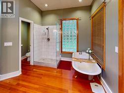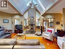 Welcome to 7734 Mcaulay Road, a private executive retreat set on 2.5 acres and offering over 4,000 sq ft of timeless living space. With six bedrooms and four bathrooms, this home seamlessly blends elegance with warmth and comfort. The living room showcases soaring vaulted ceilings and a brand-new wood-burning stove, creating a striking focal point for gatherings. Rich cabinetry and solid wood floors add depth and character throughout, while the chef-inspired kitchen is equipped with a gas range, double ovens, and luxurious radiant in-floor heating. The primary suite is a true sanctuary, featuring two walk-in closets, a classic clawfoot tub, and a tiled glass shower. Outdoors, enjoy a three-car garage, fire pit, kids' fort, and direct trail access from your backyard. With ample room to play, relax, and entertain, this exceptional property is the perfect family haven. Privacy, space, and thoughtful design come together here, offering a refined and effortlessly inviting lifestyle. (id:27)