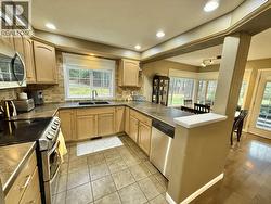 Executive home on Quesnel’s most sought-after street! This stunning property sits on a park-like, manicured 1.38-acre lot complete with in-ground irrigation and exceptional privacy. French doors open to a beautiful covered patio with a stamped concrete deck—perfect for entertaining or relaxing. Inside you’ll find 3 bedrooms and 3 bathrooms, with potential for a 4th bedroom in the fully finished basement. The massive bonus room above the heated garage features a natural gas fireplace—ideal as a family room, man cave, or guest space. The primary suite offers vaulted ceilings and a luxurious ensuite with a soaker tub and separate shower. The kitchen impresses with stainless steel appliances, double oven, stone backsplash, and a breakfast bar for casual dining. This is the full package! (id:27)