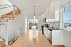 Welcome to Steveston Views. This rare corner townhome in the heart of Steveston Village features 2 spacious bedrooms, each with its own ensuite, and elevated ceiling heights that create an airy, roomy feel. Enjoy bright open living and an oversized private rooftop deck with 360° mountain and ocean views - perfect for relaxing or entertaining. Just steps to Steveston Fisherman's Wharf, shops, cafes, and the waterfront boardwalk, this home captures the best of coastal living. Includes 2 secured parking stalls in a boutique, well-maintained complex.