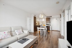 Stunning high-floor 2 Bed + 2 Bath at sought-after River Park Place by Intracorp! This beautifully maintained home shows like new and offers breathtaking panoramic river and mountain views through expansive floor-to-ceiling windows. Enjoy a bright, open-concept layout with a modern chef-inspired kitchen featuring sleek cabinetry, stone countertops, integrated appliances, and a functional island perfect for entertaining. BONUS: 2 PARKING STALLS — an exceptional value and rare find for a 2-bedroom in this building. Perfect for multi-car households or added rental flexibility. Located in the heart of Richmond’s Oval Village, just steps to the riverfront, parks, restaurants, and transit. This is elevated condo living at its finest — move-in ready and impeccably cared for.