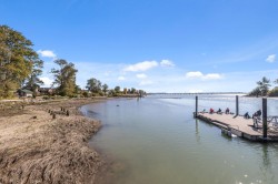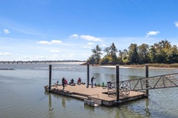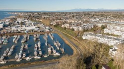 Like NEW, this is truly the best townhome in the entire development! A fabulous South facing end unit at garden level entry with sweeping 180-degree views of the river and marina. Interior living area boasts 15' ceilings which flows into a private patio by opening up the custom patio doors, creating a seamless flow for entertaining, relaxing, and gardening. Bright primary bedroom features extra windows that flood the space with natural light from every direction. Modern, gourmet kitchen boasts granite counters, custom lighting & top-of-the-line stainless-steel appliances. Steps from Diplomat Bakery, Mia Montessori, shops, waterfront trails & a short stroll into charming Steveston Village; this home defines effortless, coastal lifestyle living. Private appointments, please contact listing