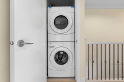 Explore this delightful 10-year-old townhouse, tucked away in a peaceful strata community. Offering 3 bedrooms, 2.5 bathrooms, and a well-designed layout, it's ideal for families or investors. Highlights include elegant laminate flooring, 9-foot ceilings on the second floor, a sleek modern kitchen with stainless steel appliances and quartz countertops, plus a bonus storage area beneath the stairs. Additional features include a balcony, backyard, air conditioning, and a tandem garage equipped with a 240V EV charger. Conveniently located near Odlin Park and top-rated schools in a welcoming neighborhood, this north-south-facing home promises a tranquil and convenient lifestyle. Open house 12-1:30pm Dec 21