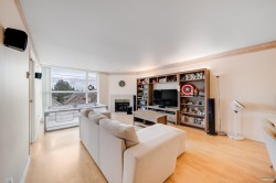 Stunning Southwest Corner Penthouse offering over 1,300 sq. ft. of bright, spacious living with 3 bedrooms and 2 bathrooms. This rare corner unit features two huge balconies, perfect for relaxing, entertaining, or enjoying beautiful open views. The home boasts an open-concept living and dining area, highlighted by floor-to-ceiling windows that flood the space with natural light, and a cozy fireplace that adds warmth and charm. Thoughtfully designed for comfort and functionality. Two side-by-side parking stalls and a storage locker-a valuable bonus for a penthouse. Bus station just outside of the building and also short distance to Blundell centre-banks, restaurant, grocery etc. A rare opportunity to own a spacious penthouse in a prime location-don't miss out!