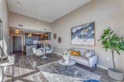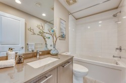 FALLING LOVE with this Rare find 2 bedroom 2 bath 850SF Penthouse unit with 14' high ceiling. SOUTH facing with Panoramic view! Features AC, Gourmet kitchen with S/S appliances, Large island. Cozy Primary bedroom with walk-in closet and Spa-inspired Ensuite. Covered Patio to enjoy your morning coffee! Free access to 5400SF Trafalgar Club with a lounge, exercise room, yoga room, billiards, music practice studio, pingpong room, outdoor planters, etc. Adjacent to Walmart and Restaurants, Walking distance to Lansdowne T&T Supermarket and Skytrain, Short drive to Yohan Centre, Aberdeen, and Richmond Centre. One parking included. Freshly painted and ready to move in! OPEN HOUSE SAT FEB 21 2-4PM