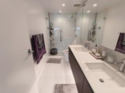 River Park Place II by Intracorp – Immaculate SE corner 2 bed + flex home, 977 sf, with views of mountains and city, all from the quiet side of the building. Bright open layout with high ceilings, central A/C & heating, Bosch appliances, and double vanity in the bath. Resort-style amenities include basketball court, 2 gyms, rooftop garden, lounges with kitchens, BBQ area, games & billiards rooms, music & study rooms, and more. Prime Oval Village location steps to T&T, Rona, restaurants, banks, River Rd dike trails, Richmond Hospital & Minoru Centre. School catchments: Brighouse Elementary & Richmond Secondary. Includes 1 parking & 1 locker. Maintained like new—move in and enjoy!