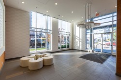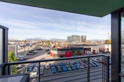 Immaculate & air-conditioned 1 bedroom concrete home that features totally open views to the north shore mountains with dramatic floor to ceiling windows! This very lightly used, vacation home offers an open gourmet kitchen, quartz countertops, stainless steel appliances, gas cooktop, wood flooring, insuite laundry, 523 SF of spacious living and a great north-facing balcony off of the living room. Located in Tower D of the Quintet community, this home enjoys access to 2-acres of serene rooftop gardens, indoor swimming pool, hot tub, sauna, gym, yoga studio and party room. Super quiet, yet amazingly close to the Skytrain Station, buses, Lansdowne Mall, Price Smart, restaurants, banks, community centre & all the conveniences of No 3 Road. A must see & ready to move!