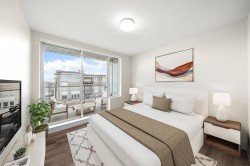 Welcome to Calla at the Gardens by Townline Homes. This luxurious, air-conditioned 3 bedroom, 2 bathroom corner unit offers a thoughtfully designed ~1,000 sq.ft. layout with desirable south-east exposure and two spacious balconies showcasing unobstructed mountain and open field views. The contemporary kitchen features stainless steel appliances, a gas cooktop, and quartz/granite countertops. Includes 1 secured parking stall, 1 bike locker, plus the option to rent an additional stall. Enjoy premium amenities including a fully equipped gym, indoor sports/basketball court, clubhouse, BBQ area, and serene gardens. Steps to Ironwood Mall, Save-On-Foods, schools, parks, transit, and quick Hwy 99 access. A fantastic opportunity. Open House: Sunday, February 22nd (2-4 PM)