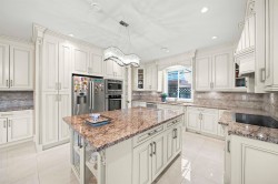Luxurious custom-built home located in one of Richmond’s most desirable & quiet neighbourhoods—Woodwards! Sitting on a 7,200 sqft lot, features 5 ensuite bed, 6 baths plus a media room or private office. Main-floor media room can convert into a private rental suite-ideal mortgage helper w/ separate entrance. It features double-height ceilings, grand marble foyer, crown moulding, crystal chandeliers, hardwood floors, radiant heating, HRV, & A/C throughout. Open-concept layout w/ gourmet and wok kitchens, equipped with premium Miele appliances. Enjoy a fenced private garden, 3-car garage, and powered gate. 10-min walk to top-ranked public & private schools including Errington Elementary ,Steveston-London Secondary & Richmond Christian School. Only a 5-min drive to Richmond Centre.