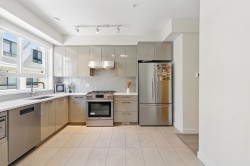 Inside unit. Welcome to PARC RIVIERA, this immaculate home offers captivating views of the city and mountains. Boasting 4 spacious bedrooms and 4 bathrooms, it features a gourmet kitchen equipped with high-end European appliances. The main floor impresses with higher ceilings and an eco-friendly geothermal heating & cooling system. A Beautiful scenic Dyke Trail and a large green park are just around the corner, residents also have the access to various of top tier amenities such as a Clubhouse, a fully equipped gym, an indoor pool. 3 Parking in total, with a 2-car tandem garage plus an additional underground stall. There are four balconies within the unit that allows more fresh air and natural sun light come inside.