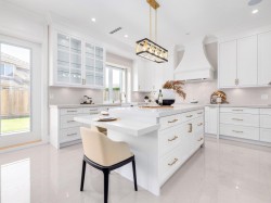 Elegantly appointed & quality built home in a prestigious neighbourhood. Built by an experienced and reputable builder. Excellent curb appeal with high end stone and custom exterior finishes. Features an open concept layout with high ceilings in Foyer, Living room and Family room. 4 large bedrooms up, 1 bedroom & den on the main floor. Designer kitchen, branded appliances, lights, plumbing fixtures & finishing throughout. Fully automated with Control4. Within minutes to all amenities. Excellent school catchments and easy access to City Centre and downtown Vancouver. Triple car garage. Finished with the utmost care to design and detail. Beautiful home in an excellent location. Fully improved street with sidewalks, curbs and gutters.