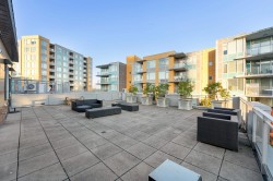 Welcome to TEMPO air-conditioned concrete building in the heart of Richmond! This 972 sqft Jr 3bedroom corner unit, plus a HUGE 570 sqft rooftop patio — perfect for outdoor living, gardening, and entertaining. Enjoy expansive living space, beautiful city and mountain views, and a functional layout. Features a modern kitchen with stone countertops, stainless steel appliances, gas cooktop, and laminate flooring throughout, along with 1 parking and 1 locker. Fantastic amenities include an indoor pool, hot tub, gym, yoga studio, rooftop garden and party room etc. Prime location, walk to SkyTrain, Richmond Centre, Lansdowne, Olympic Oval, T&T, and restaurants. School catchment: Brighouse Elementary & Richmond Secondary.