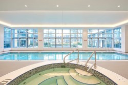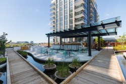 Welcome to this functional 2bed/2bath home at iconic waterfront ViewStar community. EXQUISITE DESIGN by renowned Architect, this home is complete with air conditioning, soaring 9-foot ceilings, engineered hardwood flooring, a modern kitchen equipped w premium Miele appliances & a Bloomberg washer/dryer. Pvt Primary bdrm with beautiful ensuite. Large balcony with tranquil coutyard view to enjoy morning coffee. Residents enjoy access to world-class amenities including an indoor swimming pool w sauna, 2 fully equipped gyms, a rooftop garden & playground, party room & study rooms. Ideally situated in a super-convenient waterfront location, just steps from the new Capstan SkyTrain stn, Richmond Marina, groceries, restaurants & major shopping malls, this is elevated urban living at its finest!
