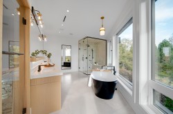 Welcome to 9500 Finn Road, offering modern luxury living in the coveted Gilmore subarea. This exceptional custom-built home features 3,677sq. ft. of refined living space on a private 13,695 sq. ft. lot, designed for both comfort + entertaining. Enjoy SW exposure from the rear, filling the home w natural light & serene views over the Woodwards ravine. Luxury finishes include oversized windows with power shades, European oak flooring, designer lighting, a custom glass staircase, real oak cabinetry & premium appliances. Comfort is enhanced with a heat pump with A/C, in-floor radiant heating & an open-concept layout & EV charger. This home offers 5 spacious ensuite bedrooms, a spa-inspired primary with steam shower/sauna. Step out to a large entertainer’s deck and enjoy this peaceful setting.
