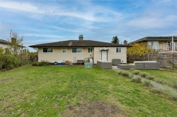 This adorable 3 bed/2 bath rancher is nestled in a prime, quiet family cul-de-sac walking distance to parks and all amenities you could want. Experience seamless single-level living featuring hardwood floors and a cozy wood fireplace in the living room. Highlights include recently updated baths, hot water tank, built-in dishwasher and an efficient heat pump for year-round climate control. Discover the new, detached backyard studio—a flexible sanctuary for a home office, gym, or guest suite. The large, sunny yard offers incredible garden potential for your dream outdoor oasis. Ideally located steps from Onyx and Horner parks, plus the UVic Chip Trail and Mystic Vale nature paths are just moments away. Daily life is easy with Shelbourne Plaza, Tuscany Village, and University Heights shopping just a short stroll away. Complete with updated windows and wheelchair accessibility, this home is truly move-in ready!