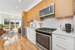 Welcome to your oasis of modern living in a highly sought-after award-winning Built Green Gold building! This pristine 1-bedroom, 1-bathroom condo boasts an inviting bright and airy ambiance. This home offers a sleek & modern kitchen with beautiful finishings, gas cooktop and SS appliances. The home is bright and airy filled with natural light. There is convenient in-suite laundry. Embrace the outdoors from your own covered balcony with a gas BBQ outlet, a perfect spot to sip your morning coffee or unwind after a long day. Outside, discover the beautiful maintained property grounds. This property comes complete with one parking stall and a storage locker and is also family-oriented and pet friendly. Conveniently situated within walking distance to Royal Oak Shopping Centre, bus exchange, Broadmead Village & Commonwealth Place, every amenity you need is just moments away. Don't miss out on the opportunity to experience living with unparalleled convenience. Schedule your viewing today!