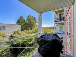 Spacious 2-bedroom, 2-bath suite at The Julia featuring quality finishes throughout, including granite countertops, stainless steel appliances, engineered hardwood floors, and in-suite laundry. The generous primary bedroom offers a walk-in closet and spa-inspired ensuite. Relax on your private balcony or take in sweeping vistas toward Mt. Tolmie from the shared rooftop gazebo. This well-managed building includes secure underground parking, storage locker, bike lock-up, and allows two small pets. Unbeatable location with easy walking access to shopping, restaurants, banking, golf, transit, Camosun College, and the University of Victoria. A fantastic opportunity to enjoy comfort, convenience, and community at The Julia.