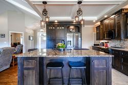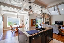 Welcome to sprawling elegance in this custom built 2250 sqft rancher built with insulated concrete forms(ICF). So many tasteful details such as high vaulted ceilings with open beams and shiplap insides, vaulted ceilings in great room and a beautiful floor-to-ceiling stone gas fireplace. Hardwood floors grace the home throughout the main living areas & crown molding finishes the walls in all the bedrooms & den. The gourmet kitchen offers abundant cupboard & counter space with a large granite top island and the coolest light fixtures. Spacious rooms with a primary that boasts a large ensuite complete with soaker tub & separate tiled shower. Sit out on the covered patio and enjoy a beautiful mountain and valley views. Anyone would be over the moon for the 30 x 30 workshop with 200 amp power and has an RV and welding outlet. The shop is insulated and is currently not heated but has a gas line to it ready for hook-up. There is also a very convenient 2pc bath! The well has 2gpm with an additional 1500 gallon cistern for ample water. All of this on a manageable 2.47 acres in a rural setting just minutes into Salmon Arm or Enderby.