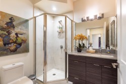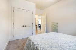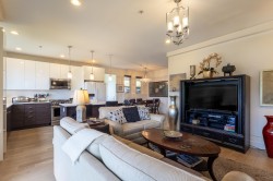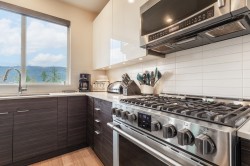 Fabulous ocean view corner unit in a quiet, private location, yet just minutes from shopping, restaurants, the golf course and more! This 3 bed/ 2 bath stylish single-level home offers 1,445 sq.ft. of bright, open living space with floor to ceiling windows & a gourmet kitchen w/ quartz countertops and newer appliances. You'll love the spacious patio, perfect for morning coffee or relaxing afternoons. The luxurious primary bedroom features a large walk-in closet and elegant ensuite w/ heated floors. Thoughtful details include a cozy N/gas fireplace, engineered HW floors, HW on demand, custom built-in closet systems, ample storage throughout, 2 parking stalls & a separate storage locker. A wonderful opportunity to enjoy comfortable, low-maintenance coastal living in a welcoming community.