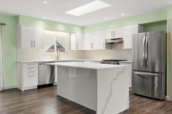 This 2 bedroom, 2 bathroom 1,175sf gem has been thoughtfully renovated and sits in a highly desirable Sidney by the Sea cul-de-sac just steps to marinas, dining, beach access, and minutes to the shops and services in the heart of Sidney. Enjoy easy one-level living in this beautifully refreshed home featuring a stunning kitchen with quartz counters, custom cabinetry, and stainless appliances including a gas range. The fantastic layout offers a spacious island ideal for entertaining, plus a big deck overlooking your private yard for summer BBQs. Hardwood flooring, modern lighting, fresh paint, and spa-inspired bathrooms complete this move-in ready package. Don’t miss it!