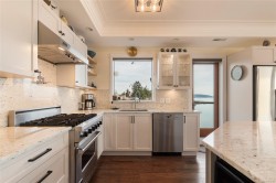 Follow your dream, home. Welcome to Villa Isabella, a seaside residence positioned on Sidney’s picturesque waterfront, with marina & vibrant village just outside your door. Spanning 3 levels this boutique oceanfront residence offers over 3,100sqft of bright living space, served by a private elevator from the entry level for easy living well into the future. Large windows frame uninterrupted views of the harbour, Mt. Baker & marina. Main level fts open-concept living/dining/kitchen with stone surfaces, generous storage & large island. The primary suite enjoys an ocean-view balcony, custom WIC & ensuite with separate shower & deep soaker tub, while a 2nd bedroom, full bath & large laundry room complete this level. Upstairs, addl living quarters offer kitchen, living & dining space with ocean views + 3 bedrooms incl 2nd primary with ensuite & WIC. Just steps to the waterfront pathway & Beacon Avenue’s cafés, restaurants, boutiques and year-round community events. Live your luxury!