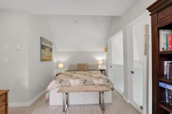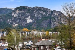 Spectacular penthouse corner unit with vaulted ceilings and panoramic views of the ocean, marina, and Stawamus Chief. This fully updated home offers a bright, modern design with premium finishes and high-end appliances. The main level features a stunning primary bedroom with a spacious walk-in closet and elegant ensuite, while the loft bedroom above opens to a private rooftop deck. Enjoy mountain and ocean vistas from the vaulted living room and sun-filled south-facing deck. Cozy up by the gas fireplace and watch the sunrise to sunset. Includes two underground parking stalls, a large storage locker, and available RV parking—an exceptional find in the heart of Squamish! They don't make them like this anymore!