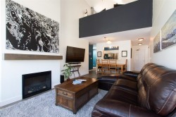WONDERFUL 3 Bedroom top floor unit in Starboard building in Marina Estates. Beautiful Wood laminate floors on the main floor with timeless quartz countertops in the Kitchen. New stylish wooden barn doors for the laundry area. 2 massive bedrooms on main floor with new closet doors in the primary bedroom. Soaring vaulted ceilings give you a feeling of comfort and space. Upstairs functions as a huge 3rd bedroom or office or music/hobby room. Enjoy the privacy and beauty of your roof top deck with views to the mountains. There is a guest suite as well as access to a fitness area for you to enjoy. Walk to everything downtown has to offer.