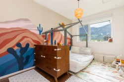 This beautifully updated condo lives more like a townhouse, offering two spacious bedrooms plus a versatile loft with vaulted ceilings and a built-in Murphy bed. The unique layout is bright and inviting, with mountain views framed by oversized windows and the warmth of a new high-efficiency gas fireplace. Fresh paint, modern vinyl flooring, plush carpet, and a custom desert mural add style and character throughout. The kitchen features a new refrigerator and oven, ready for everyday living or entertaining. Enjoy access to a private rooftop deck along with standout building amenities, including a rentable guest suite, RV and extra parking, car-care stations, and a fully equipped gym. All set in a prime downtown location, steps from Squamish’s best dining, shopping, and entertainment.
