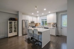 Modern West Coast living at Seven Peaks! This stylish 3 bed, 2.5 bath townhome by Polygon offers bright, open concept living with 9’ ceilings and warm laminate flooring. The gourmet kitchen features stone countertops, stainless steel appliances, and a large island perfect for entertaining. Step from your sunny deck into a private fenced backyard that backs onto a greenbelt. Upstairs, enjoy 10’ ceilings in all bedrooms and a spa inspired ensuite with rain shower and bench. A double side-by-side garage provides plenty of storage for your Squamish lifestyle. Close to trails, schools, and Brennan Park Rec Centre.
