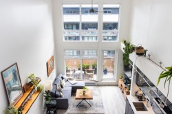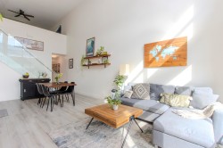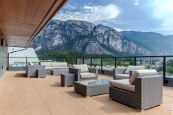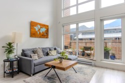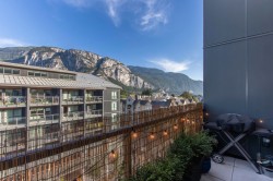 Top-floor 2 bedroom loft penthouse at The Lauren, offering a bright, open layout with 17 ft ceilings and refined finishes throughout. The open-concept kitchen and dining area is ideal for everyday living and entertaining. The spacious loft-style primary bedroom features a full 4-piece ensuite with room for a king-sized bed and additional furniture. Enjoy morning coffee or evening sunsets from the deck or the upper rooftop patio and gardens, with stunning views of the Stawamus Chief and surrounding mountains. Located in the heart of Squamish, steps to shops, cafés, breweries, groceries, the marina, estuary, and endless trails. Includes storage locker, bike room, and bike wash. Well-run strata and still under home warranty.