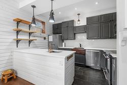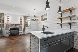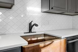 The heart of the home, the efficient kitchen, is a statement in both function and style. Elegant quartz countertops and ample custom cabinetry frame a stunning copper farm sink, complemented by stainless steel appliances and the ultimate convenience: a pot filler.